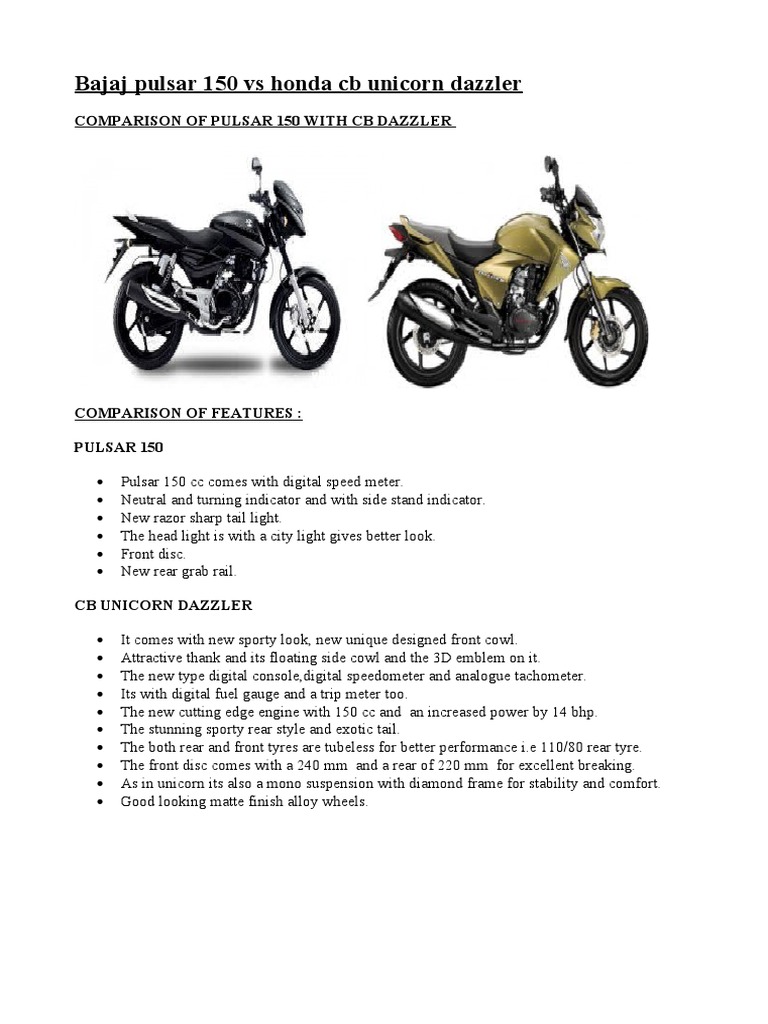 Bajaj Pulsar 150 Vs Honda Cb Unicorn Dazzler
