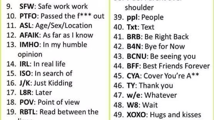 The kids were able to chat with their grandma online. Used to represent the gesture of smacking your forehead with your palm to express embarrassment or frustration. F text message chat abbreviations. They are mostly on streams like twitch.